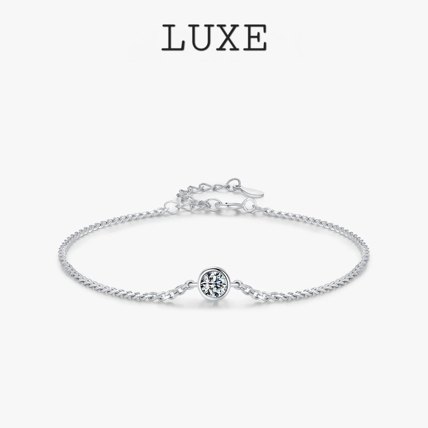 LUXE 0.25CT Moissanite Bezel Setting Bracelet For Women Diamond 925 Sterling Silver Elegant Chain Bracelet Wedding Jewelry