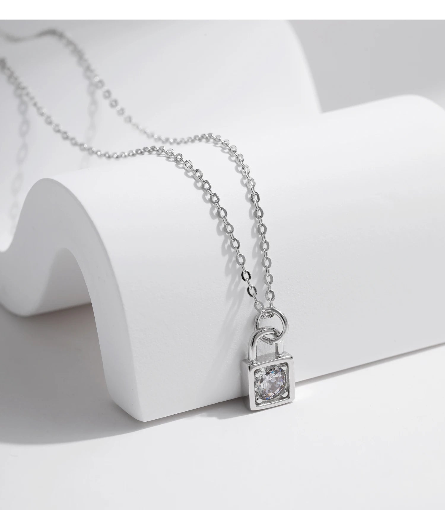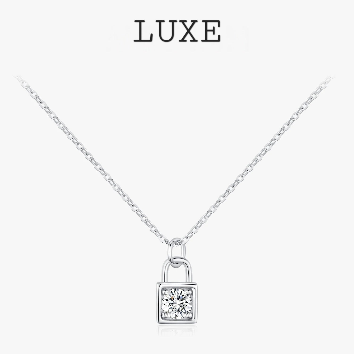 LUXE 0.5 Carat D Color Moissanite Lock Pendant Necklace For Women 925 Sterling Silver Party Stackable Fine Jewelry With Boxes