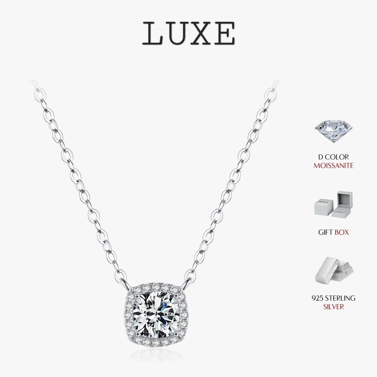 LUXE 1 Carat Square Cushion Cut Halo Moissanite Pendant Necklace For Women 925 Sterling Silver Dazzling Wedding Bridal Jewelry
