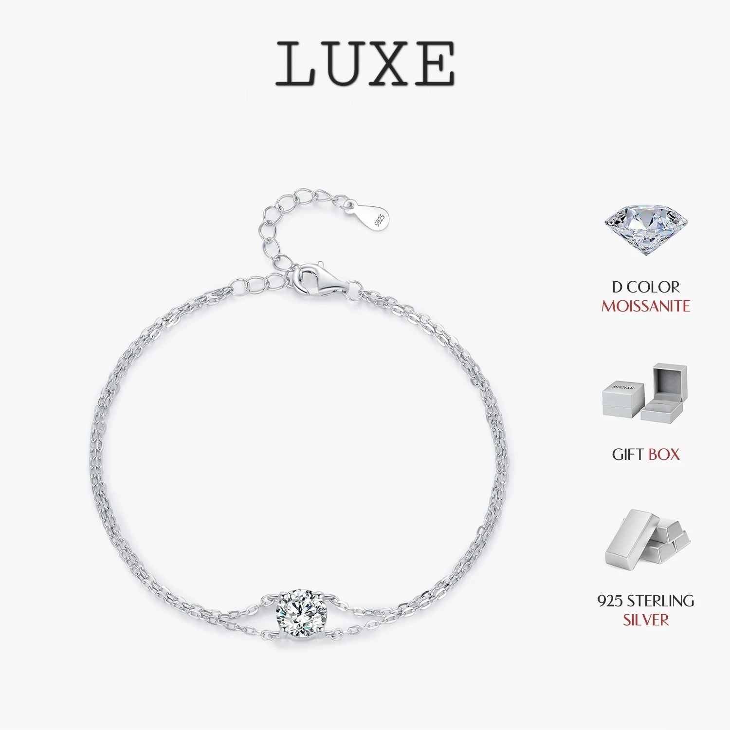 LUXE 1CT D Color Moissanite Bracelet 925 Sterling Silver Delicate Double Layer Bracelets For Bridal Wedding Fine Jewelry Gifts