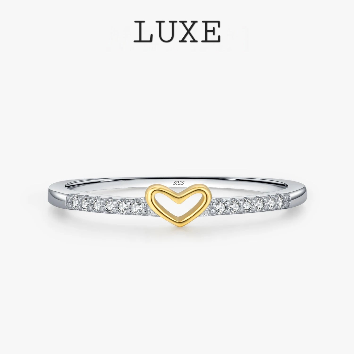 LUXE 925 Sterling Silver Simple Romantic Heart Finger Ring Trendy Metallic Contrast Design Rings For Women Fine Jewelry