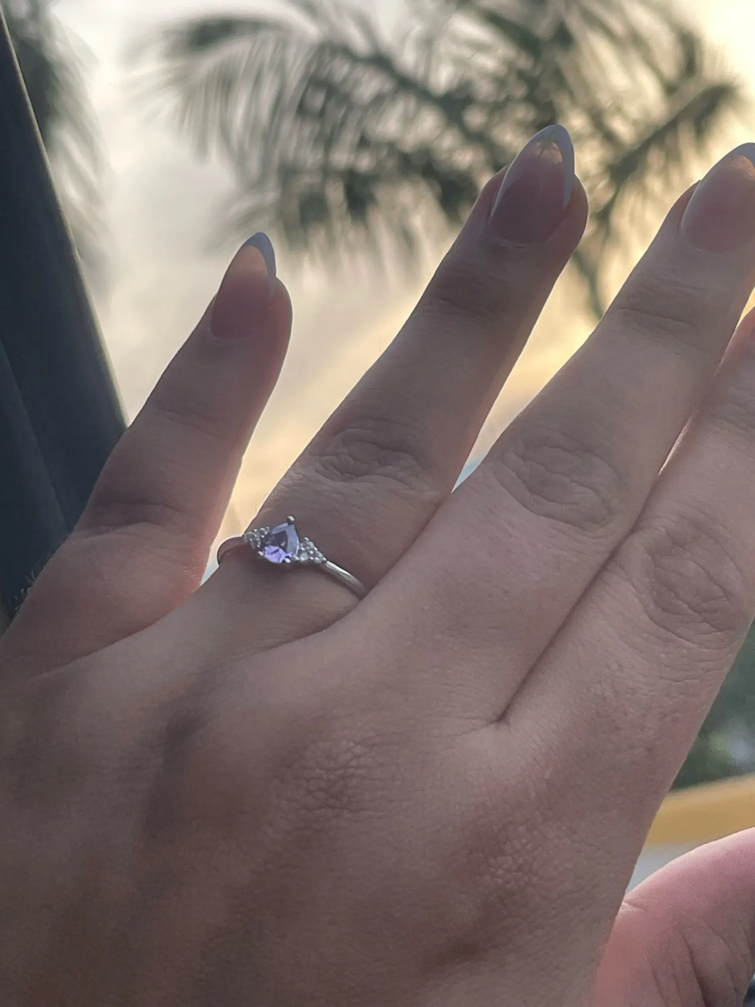 LUXE 925 Sterling Silver Water Drop Cocktail Ring Classic Prong Purple Cubic Zirconia Rings For Women Female Fine Jewelry