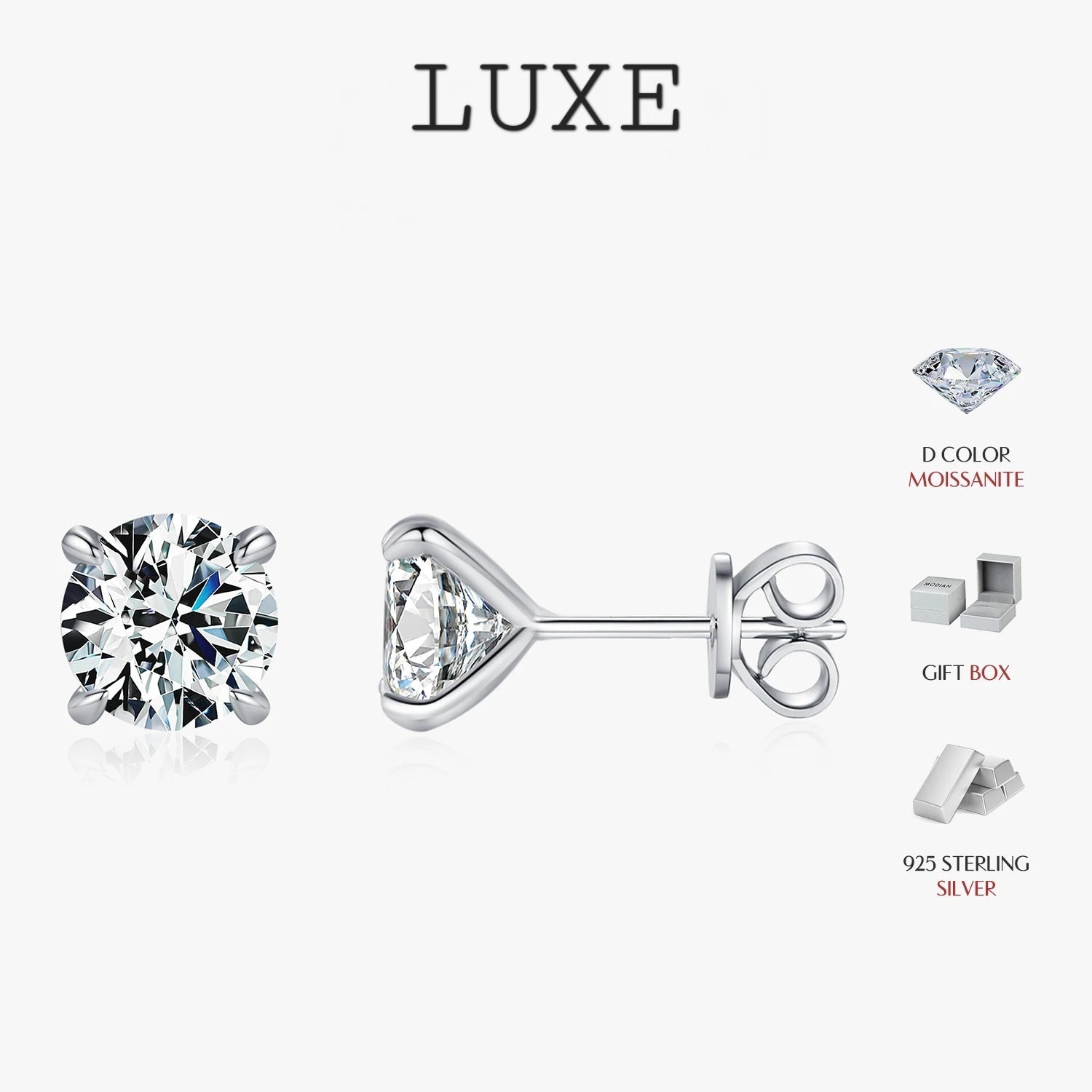 LUXE D Color 1CT Moissanite Stud Earrings 925 Sterling Silver Wedding Engagement Lab Created Diamond Jewelry For Women Gift