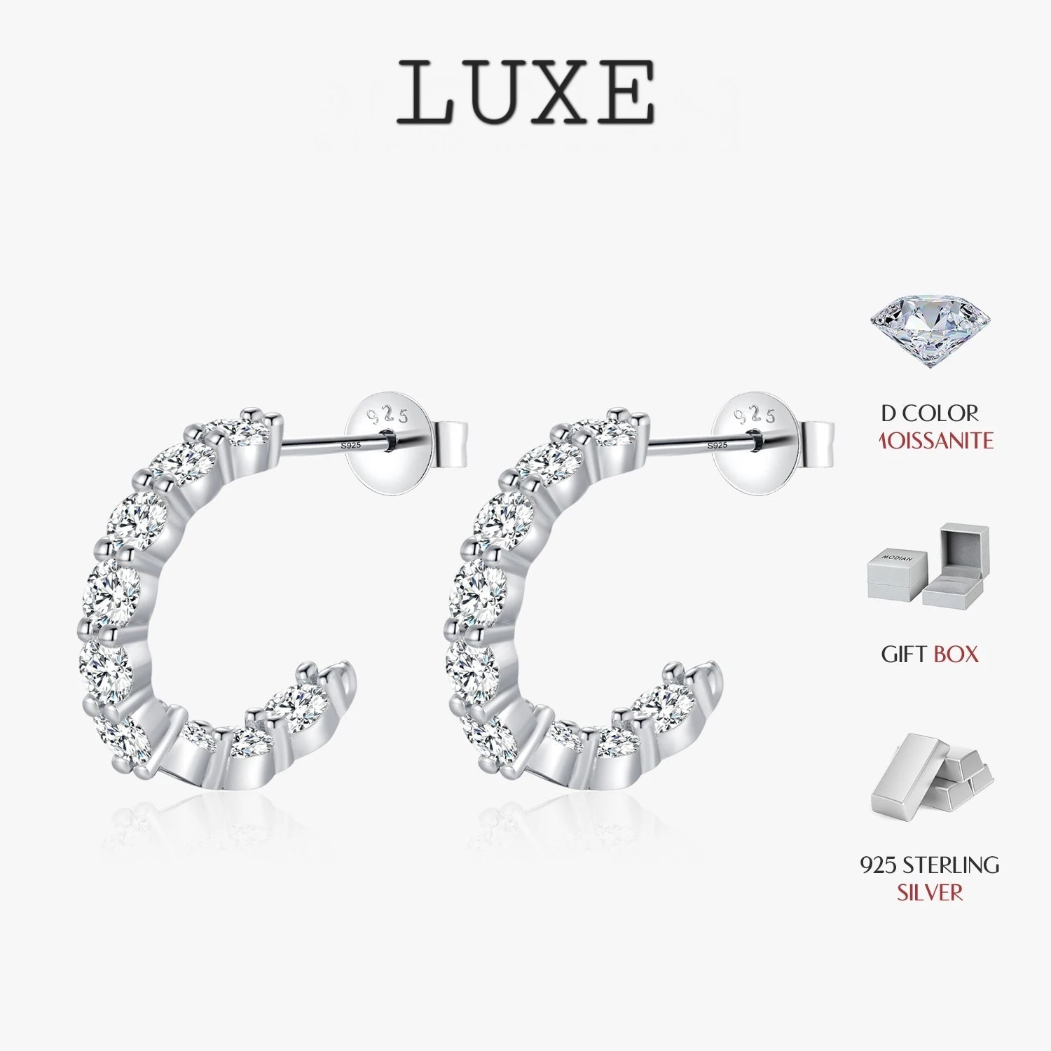 LUXE D Color C Shape Moissanite Earrings 925 Sterling Silver Charming Dazzling Hoop Earrings For Women Wedding Fine Jewelry