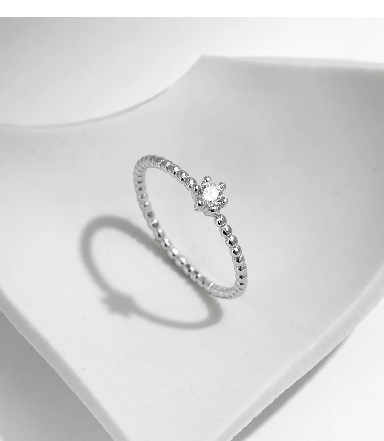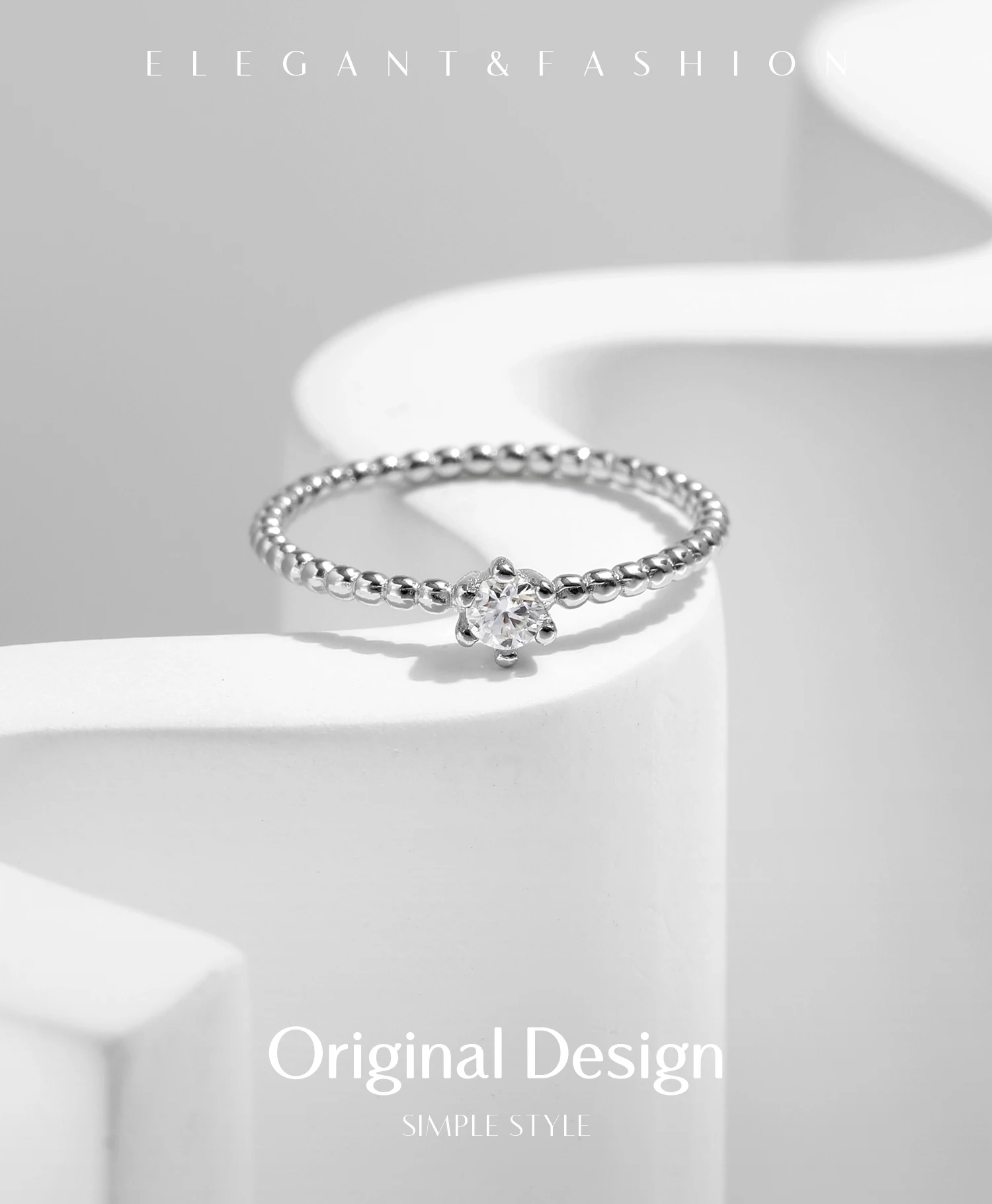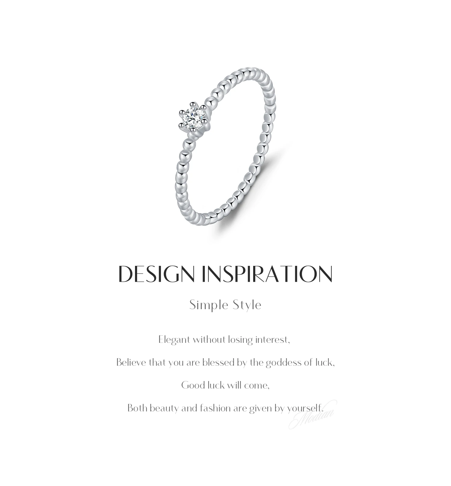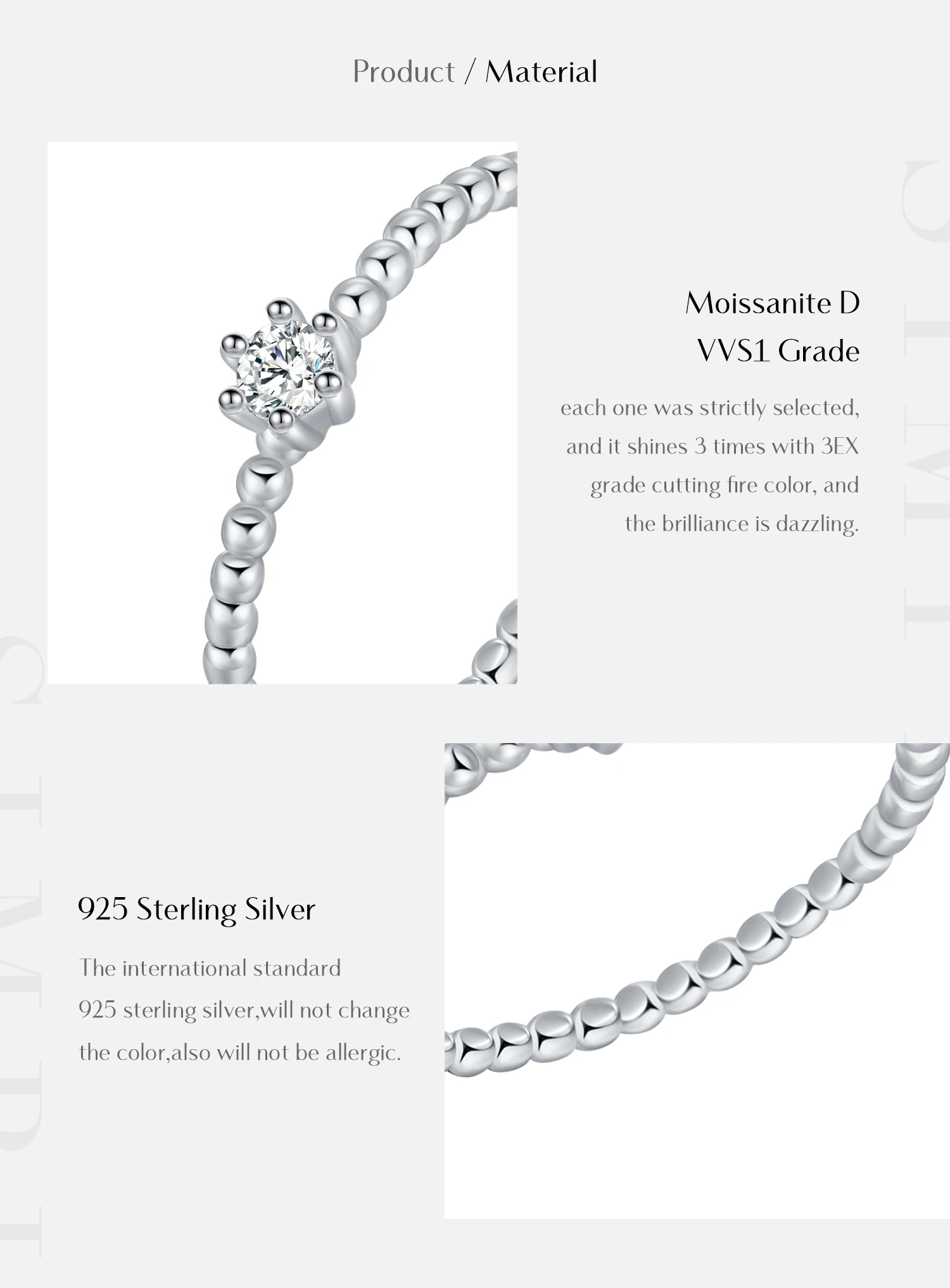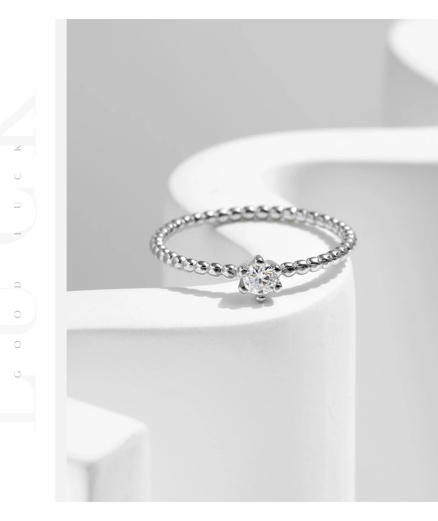 LUXE D Color Round Moissanite Lab Diamond Rings 925 Sterling Silver Simple Classic Beads Stackable Ring For Women Jewelry