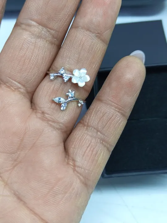 LUXE Exquisite Shell Pearl Thin Flower Ring Real 925 Sterling Silver Opening Size Stackable Finger Rings For Women Jewelry