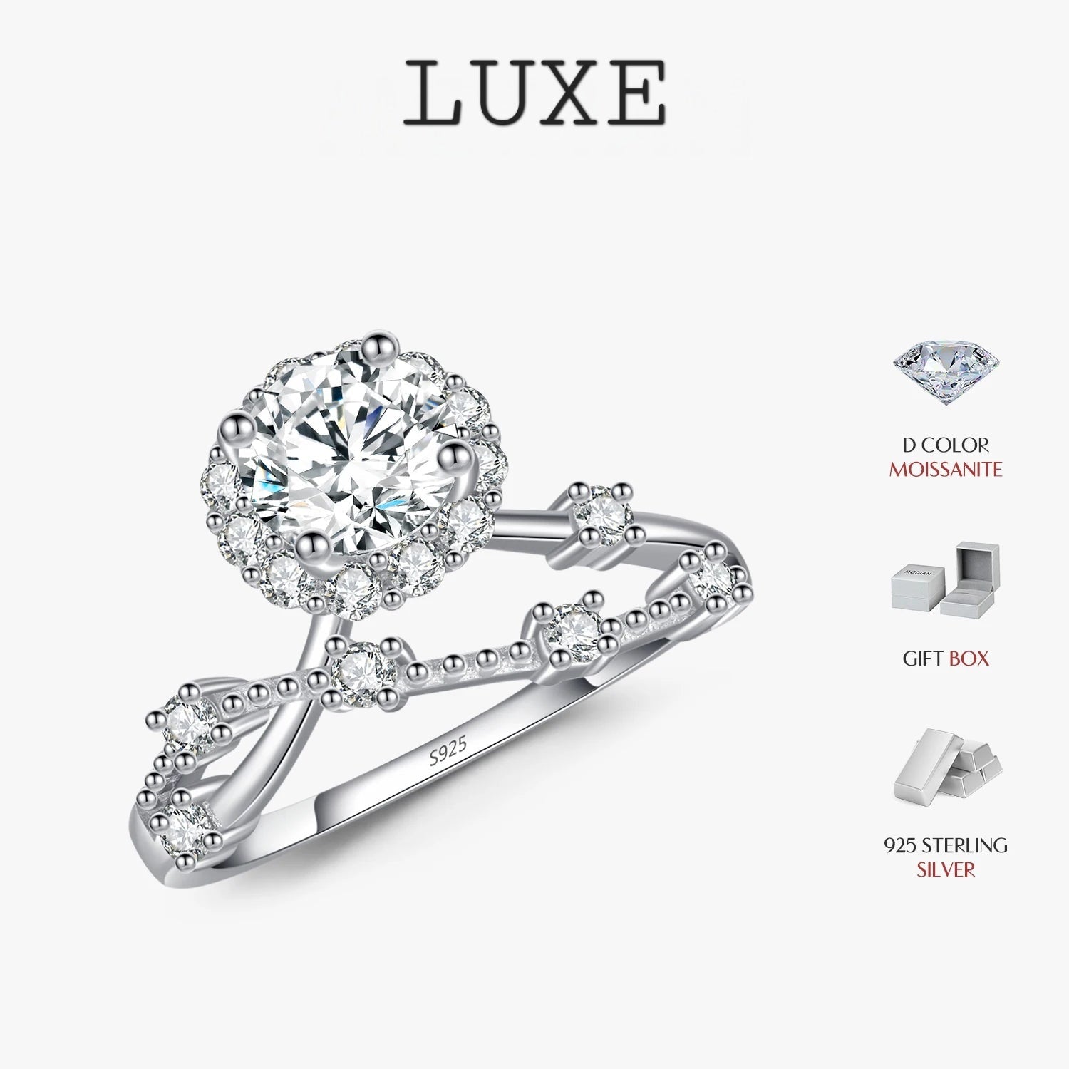 LUXE Moissanite Ring Delicate Lab Diamond Halo Ring 925 Sterling Silver Crown Luxury Rings for Women Wedding Fine Jewelry