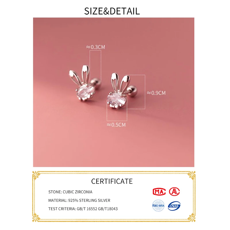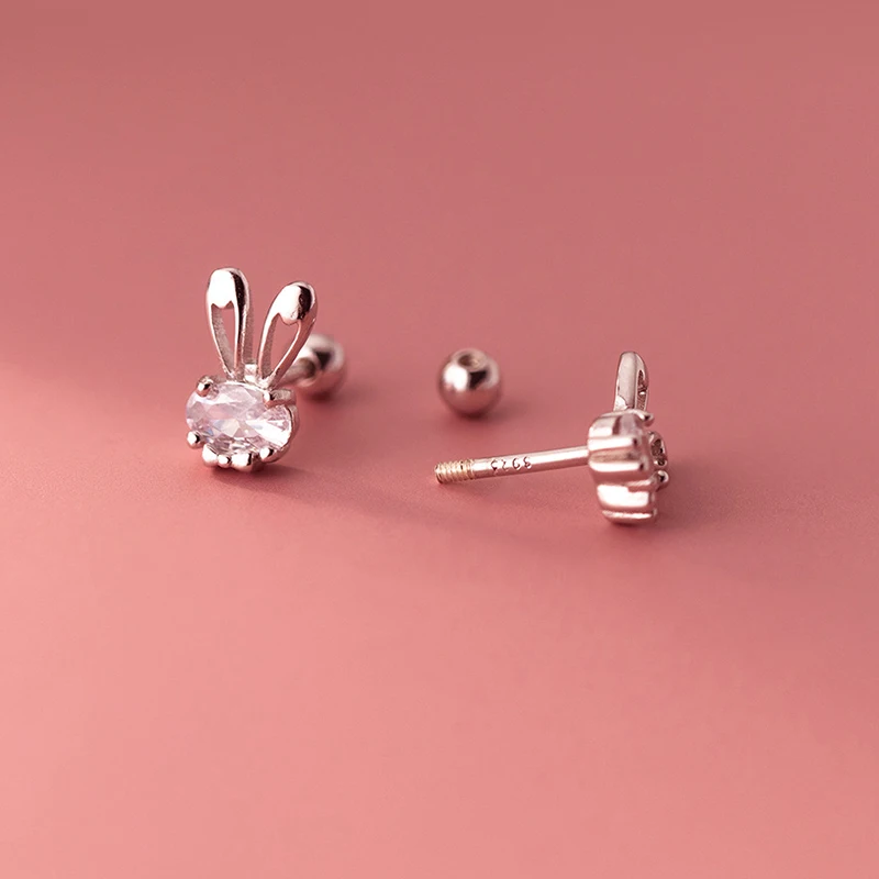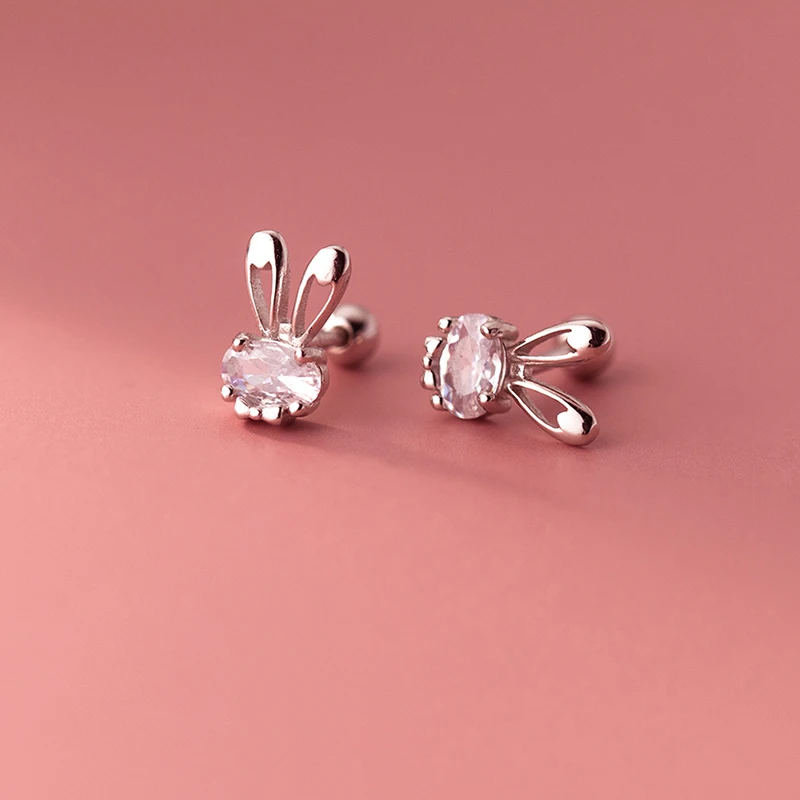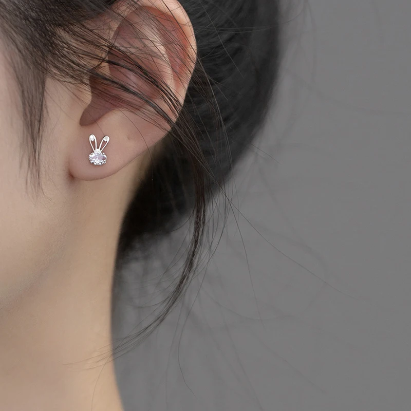 LUXE Real 925 Sterling Silver Zircon CZ Rabbit Stud Earrings For Women Party Trendy Fine Jewelry Minimalist Accessories