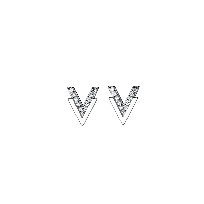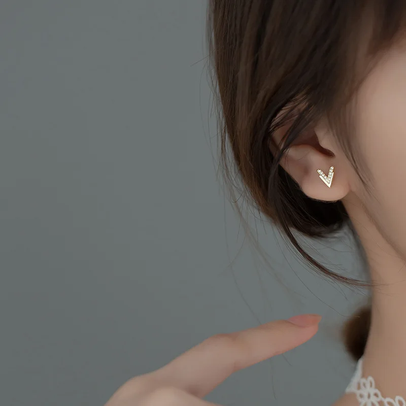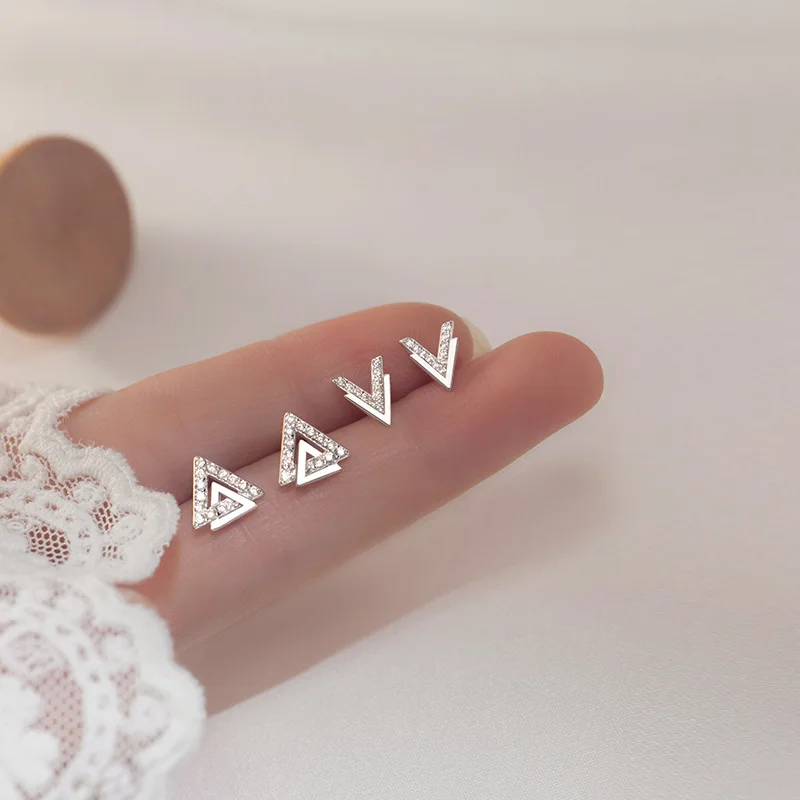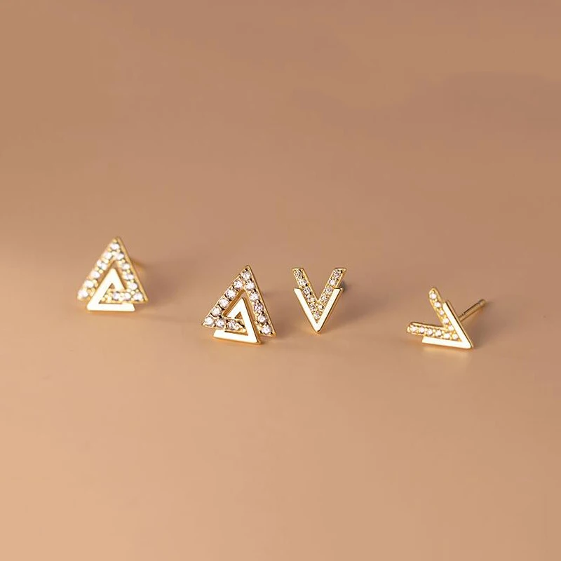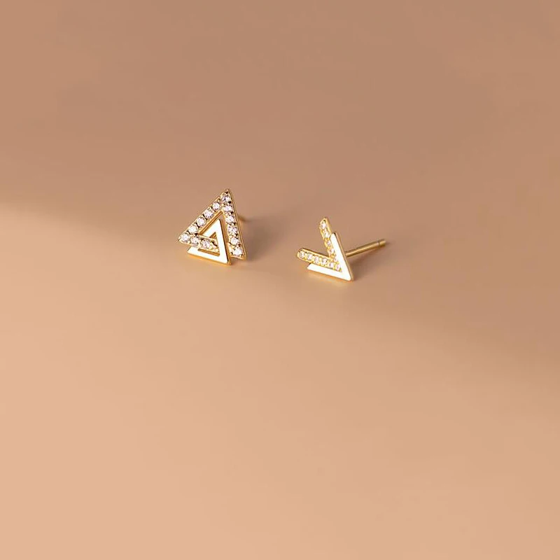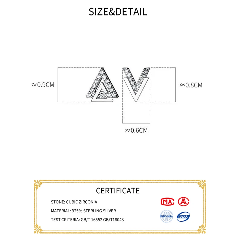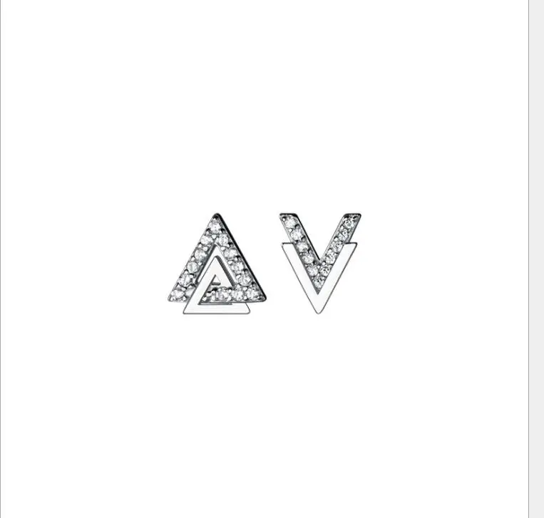 LUXE Real 925 Sterling Silver Zircon Letter Triangle Stud Earrings For Women Minimalist Fine Jewelry Accessories