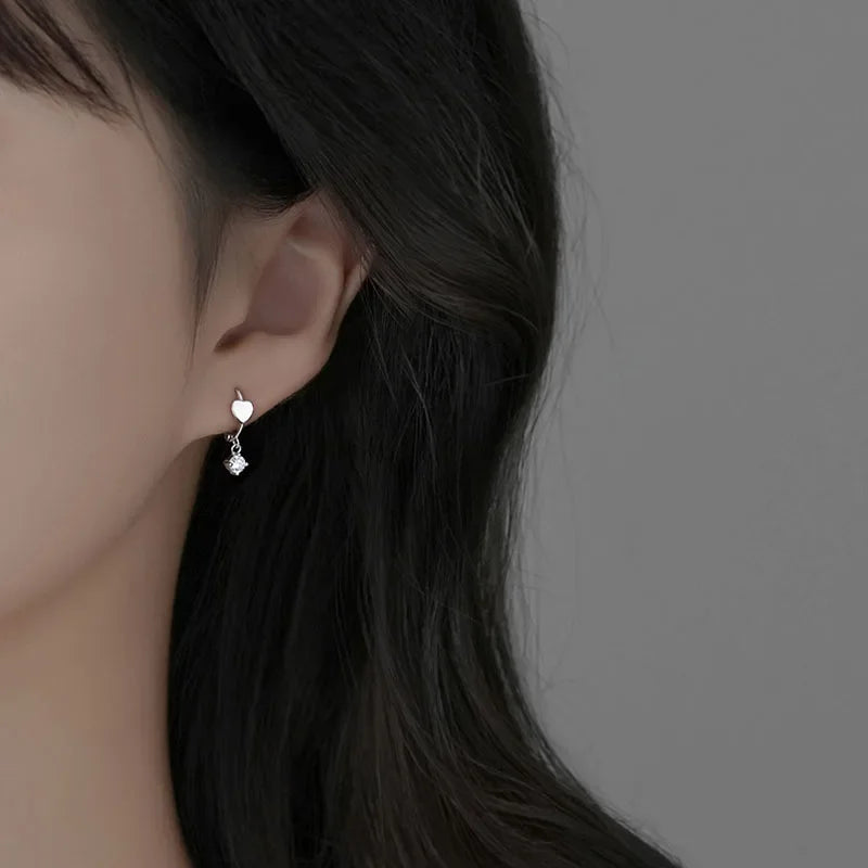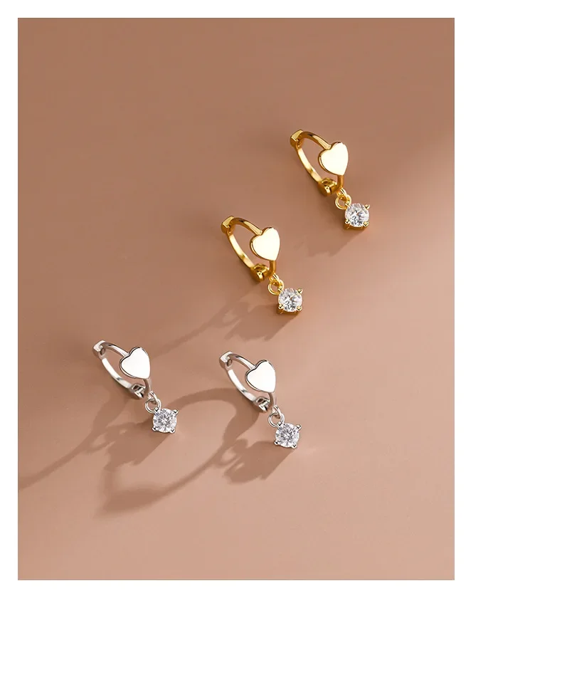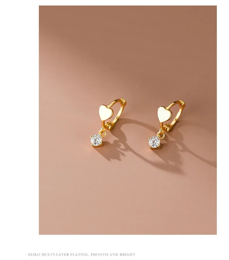 LUXE Real 925 Sterling Silver Zircon Pendant Heart 18K Gold Huggies Hoop Earrings For Women Classic Fine Jewelry Accessories